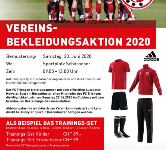 Am kommenden Samstag besteht im Clubhaus die Möglichkeit, sich mit neuen, chicen Vereins- und Trainingskleider einzudecken!